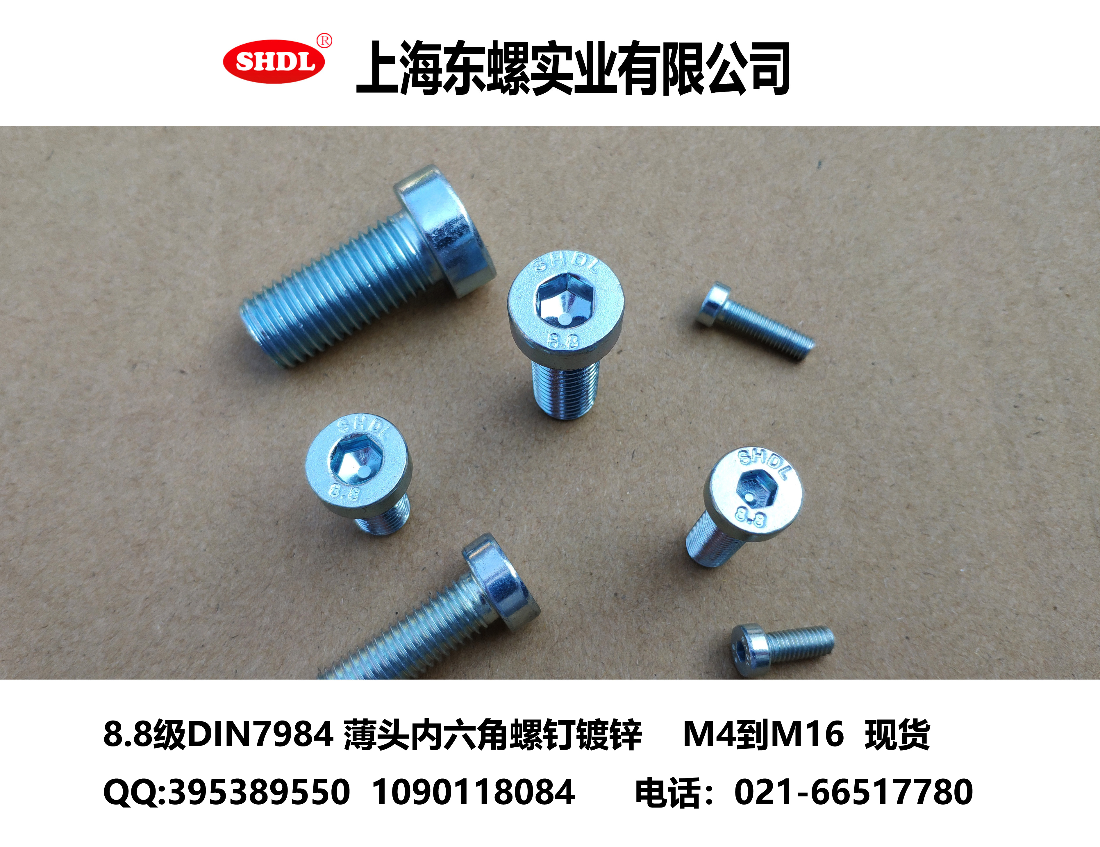 8.8級(jí)DIN7984薄頭內(nèi)六角螺絲,規(guī)格:M3-M30,表面處理:發(fā)黑,蘭白鋅等.